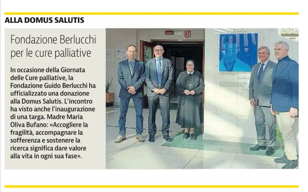 In occasione della Giornata nazionale delle Cure palliative (11 novembre), la Fondazione Guido Berlucchi ETS ha ufficializzato la propria donazione alla Fondazione Teresa Camplani – Casa di Cura Domus Salutis di Brescia.