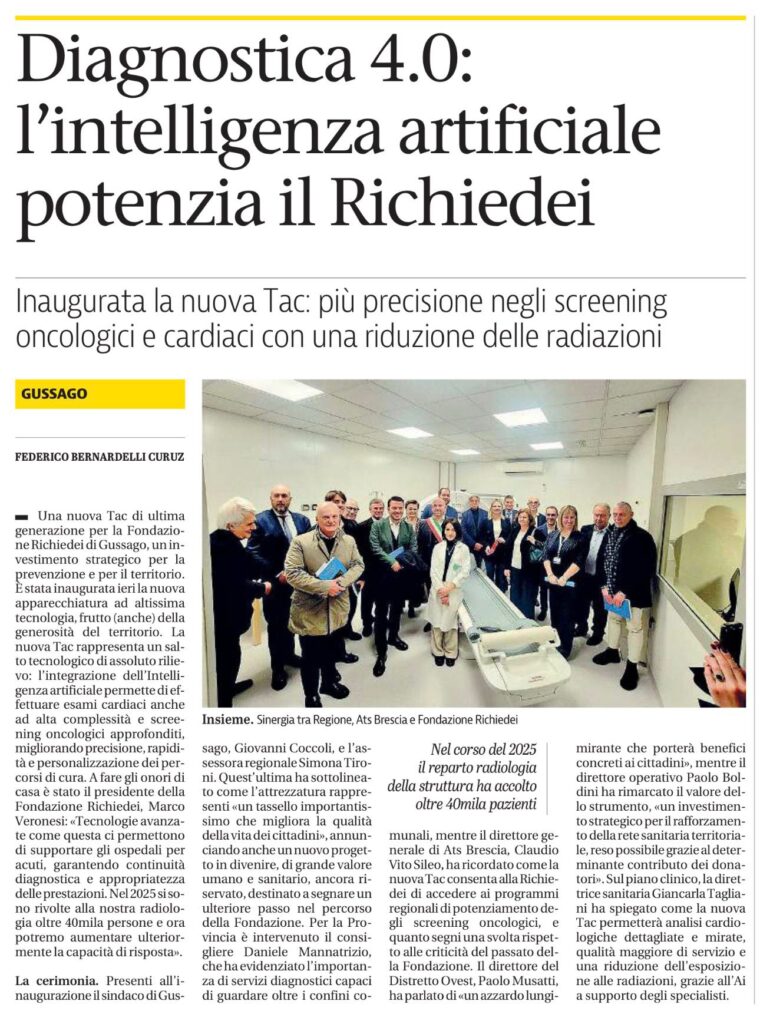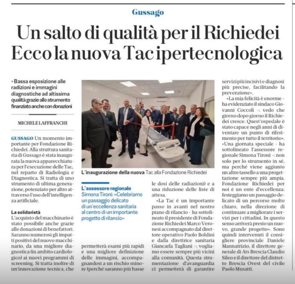 Inaugurata la nuova TAC alla Fondazione Richiedei di Gussago - Gazzetta delle Valli